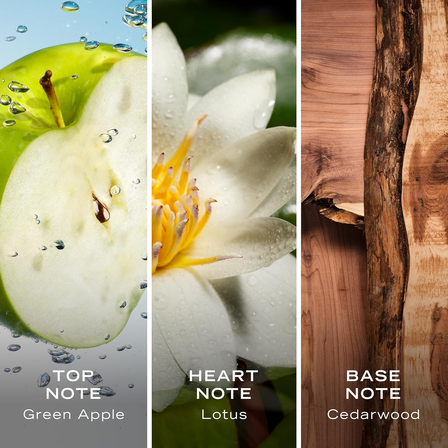 The unbridled character of the fragrance is fully manifested, right from the shimmering beginning, with tones of green leaves and juicy green apple. Then you can enjoy the aroma of dewy mimosa, complemented by aquatic lotus tones and an unusual accord, reminiscent of the aroma of a yacht sail. At the finish, warm cedar wood, in combination with marine accents, amber and musk, forms a captivating masculine base.